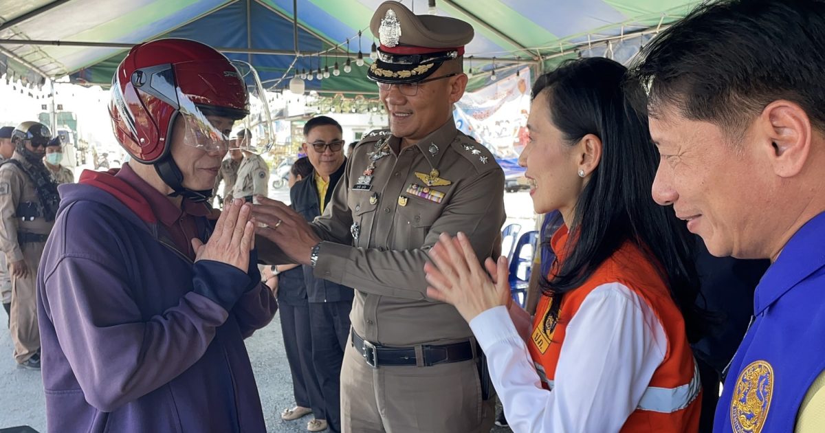 พร้อมด้วยเจ้าหน้าที่จิตอาสา จนท.ฝ่ายปกครอง,ผู้ใหญ่บ้าน,รพ.สต. ร่วมกันมอบเครื่องดื่มแจกแผ่นพับรณรงค์การขับขี่รถอย่างปลอดภัย เมาไม่ขับ และแจกหมวกนิรภัยแก่ประชาชนที่ขับขี่รถจักรยานยนต์ตามนโยบายสำนักงานตำรวจแห่งชาติ