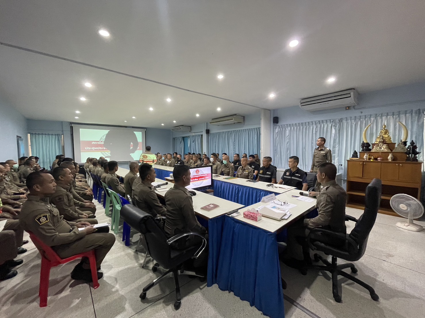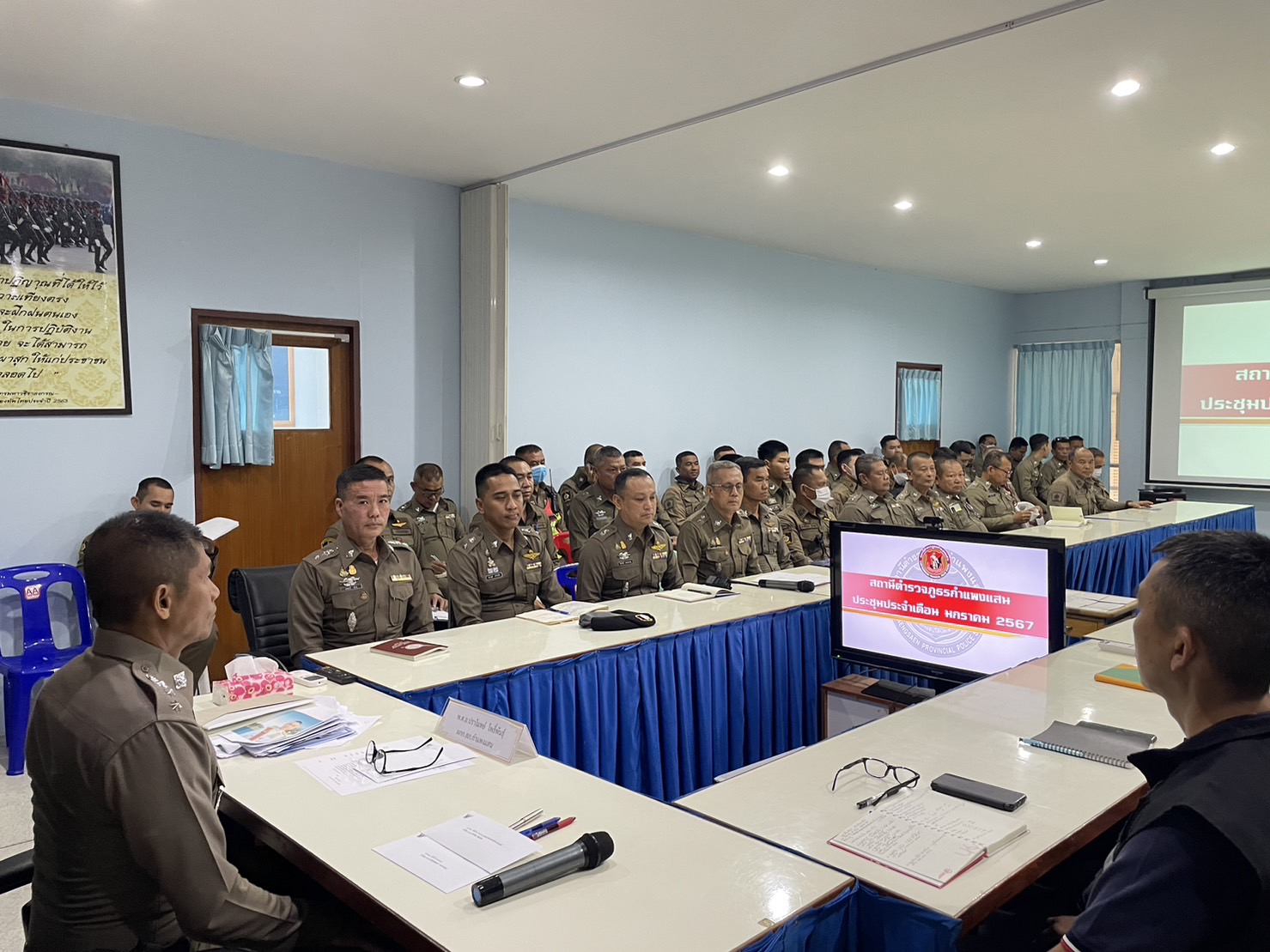 ประชุมประจำเดือน มกราคม 2567 1 มีนาคม 2567 โดย adm_kamphaengsaen adm_kamphaengsaen / ข่าวประชาสัมพันธ์,ข่าวประชาสัมพันธ์,ข่าวฝากประชาสัมพันธ์,ข่าวภารกิจผู้บังคับบัญชา วันอังคารที่ 16 มกราคม 2567เวลา 09.00 น. พ.ต.อ.ปราโมทย์ โพธิ์พันธุ์ ผกก.สภ.กำแพงแสน ประชุมข้าราชการตำรวจ สภ.กำแพงแสน สรุปผลการปฏิบัติในงานในเดือน ธันวาคม 2566 – มกราคม 2567 กำชับการออกตรวจตามจุดเสี่ยงจุดล่อแหลมต่างๆในพื้นที่รับผิดชอบเพื่อป้องกันความผิดที่กระทำกับทรัพย์สินของประชาชน กำชับการดำเนินโครงการต่างๆตามคำสั่งของผู้บังคับบัญชาหน่วยเหนือพร้อมให้ทำแบบทดสอบวัคซีนไซเบอร์และให้ดำเนินการประชาสัมพันธ์ให้ประชาชนทำแบบทดสอบ