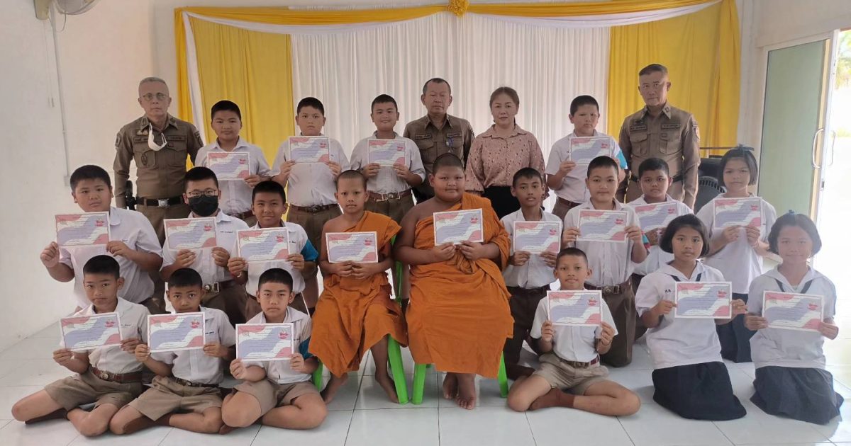 พิธีมอบประกาศนียบัตรโครงการต่อต้านการใช้ยาเสพติดในเด็กนักเรียน ที่โรงเรียนวัดศาลาตึกสิทธิฃัยพิศาล