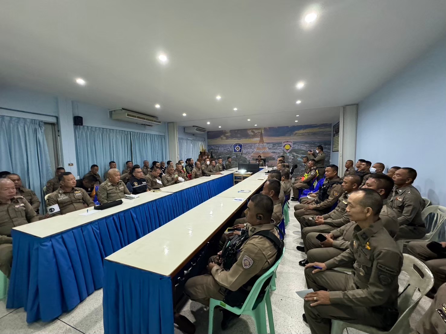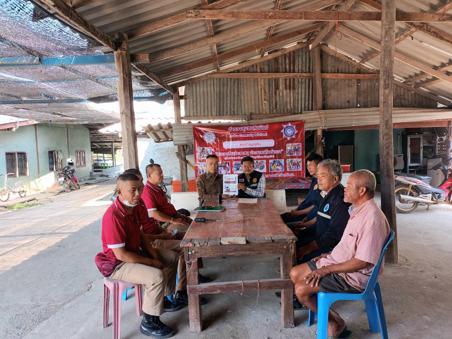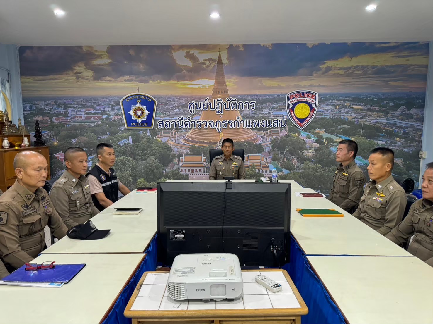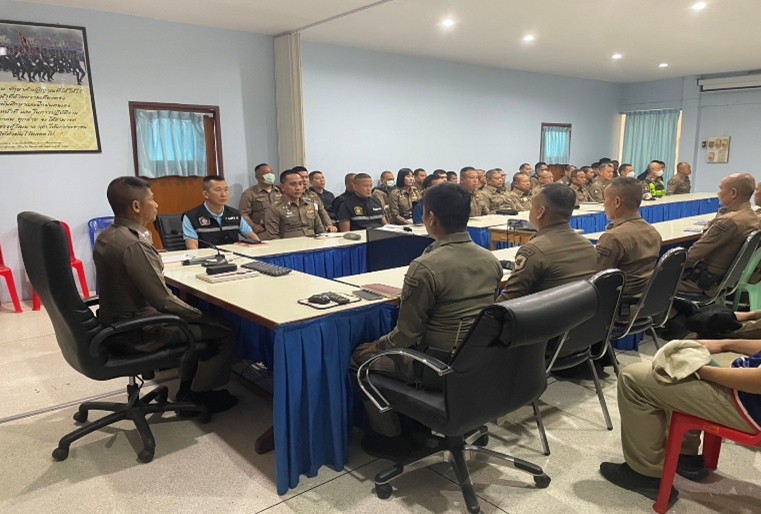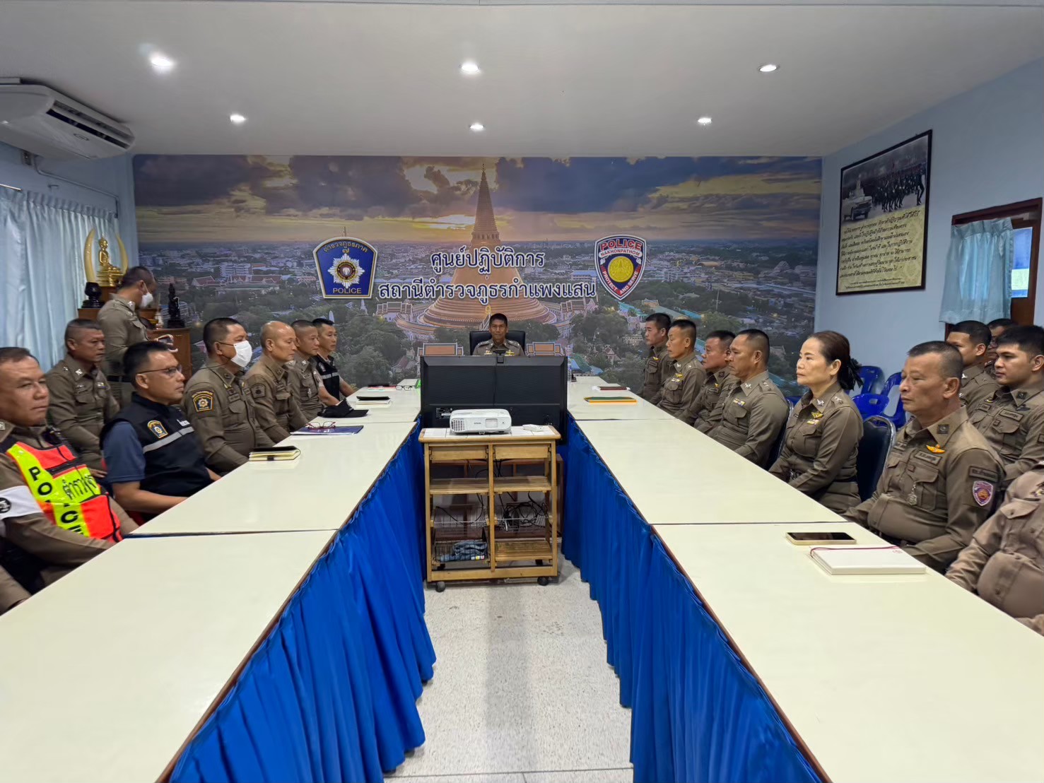 การประชุมกันระหว่างเจ้าหน้าที่ตำรวจสภ.กำแพงแสน กับฝ่ายปกครอง กำนัน ผู้ใหญ่บ้าน ฯลฯ