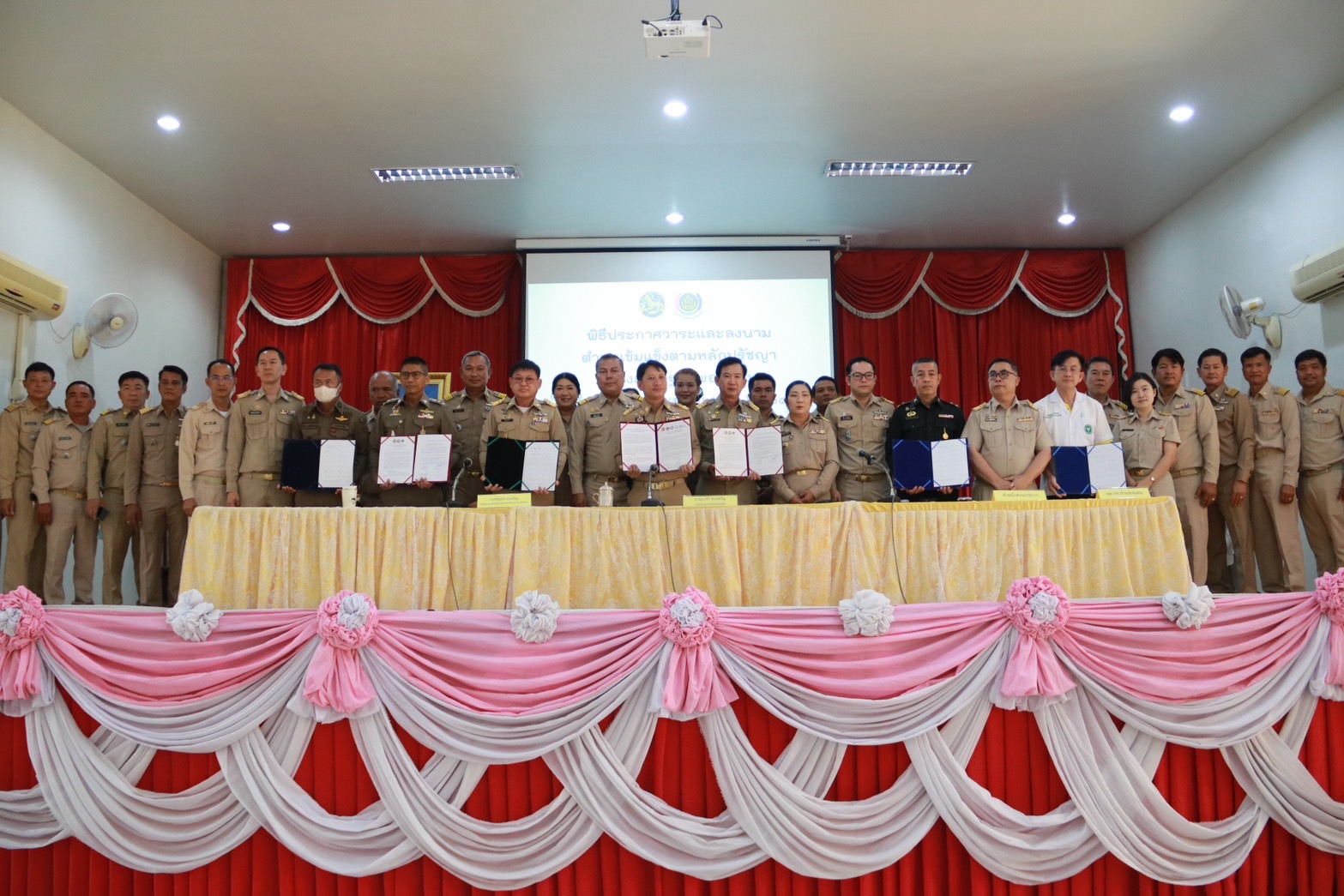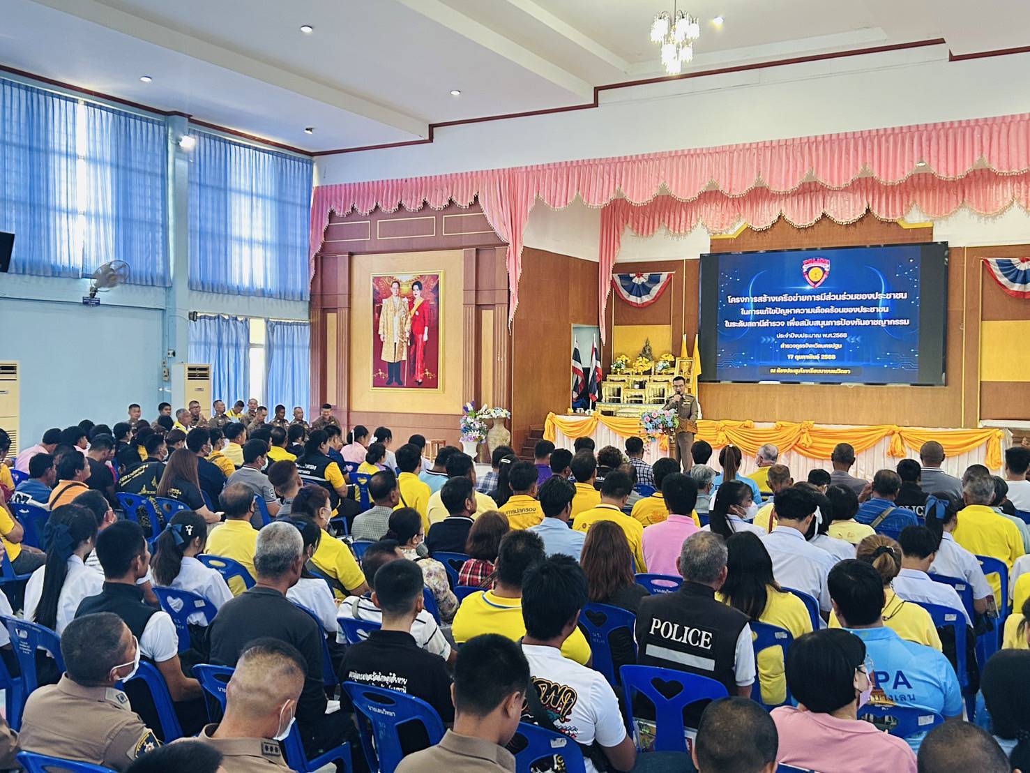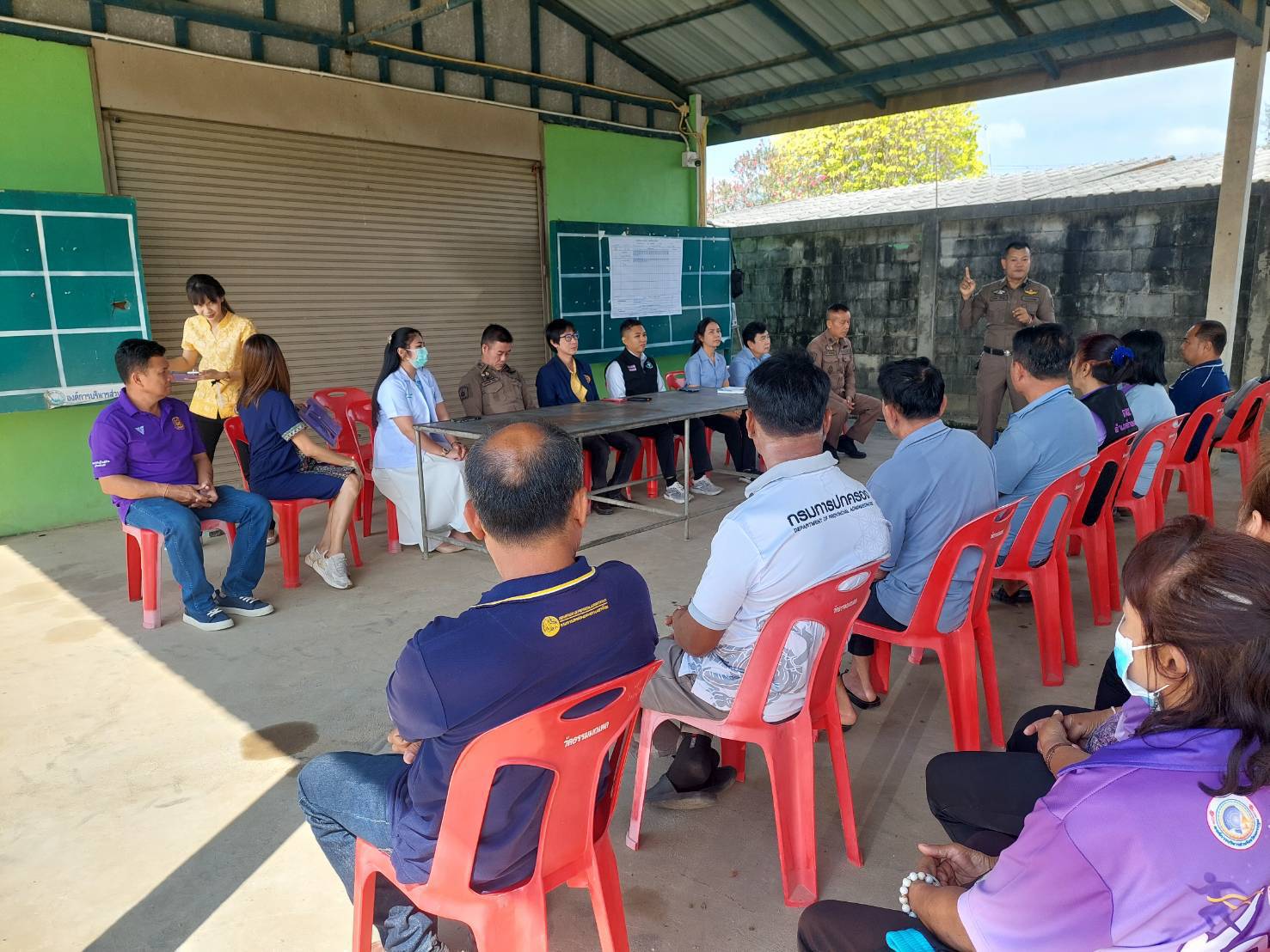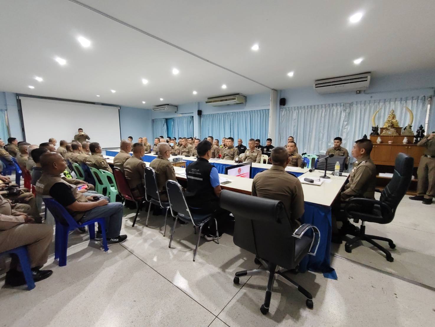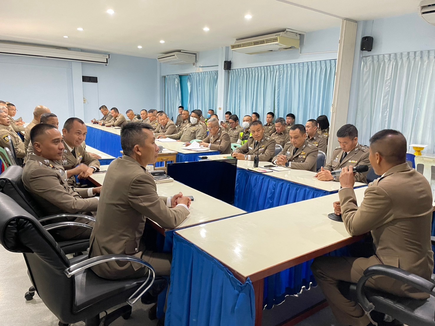 การประชุมกันระหว่างเจ้าหน้าที่ตำรวจสภ.กำแพงแสน กับฝ่ายปกครอง กำนัน ผู้ใหญ่บ้าน ฯลฯ