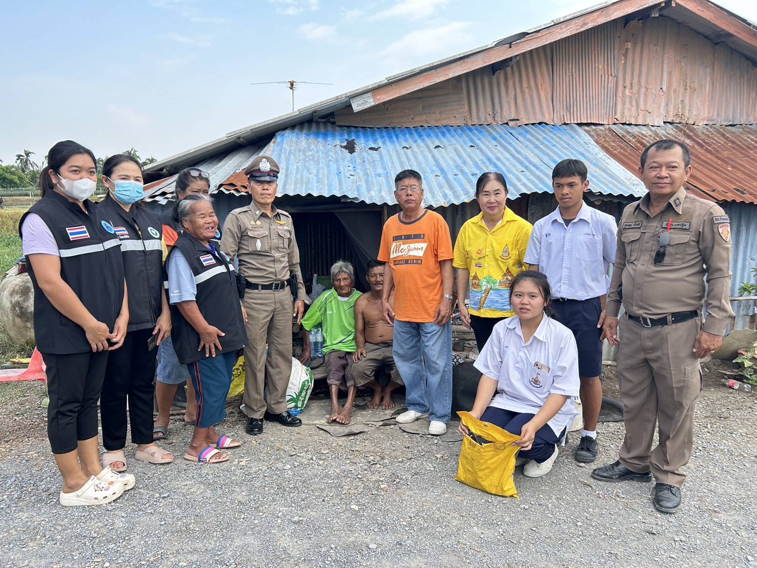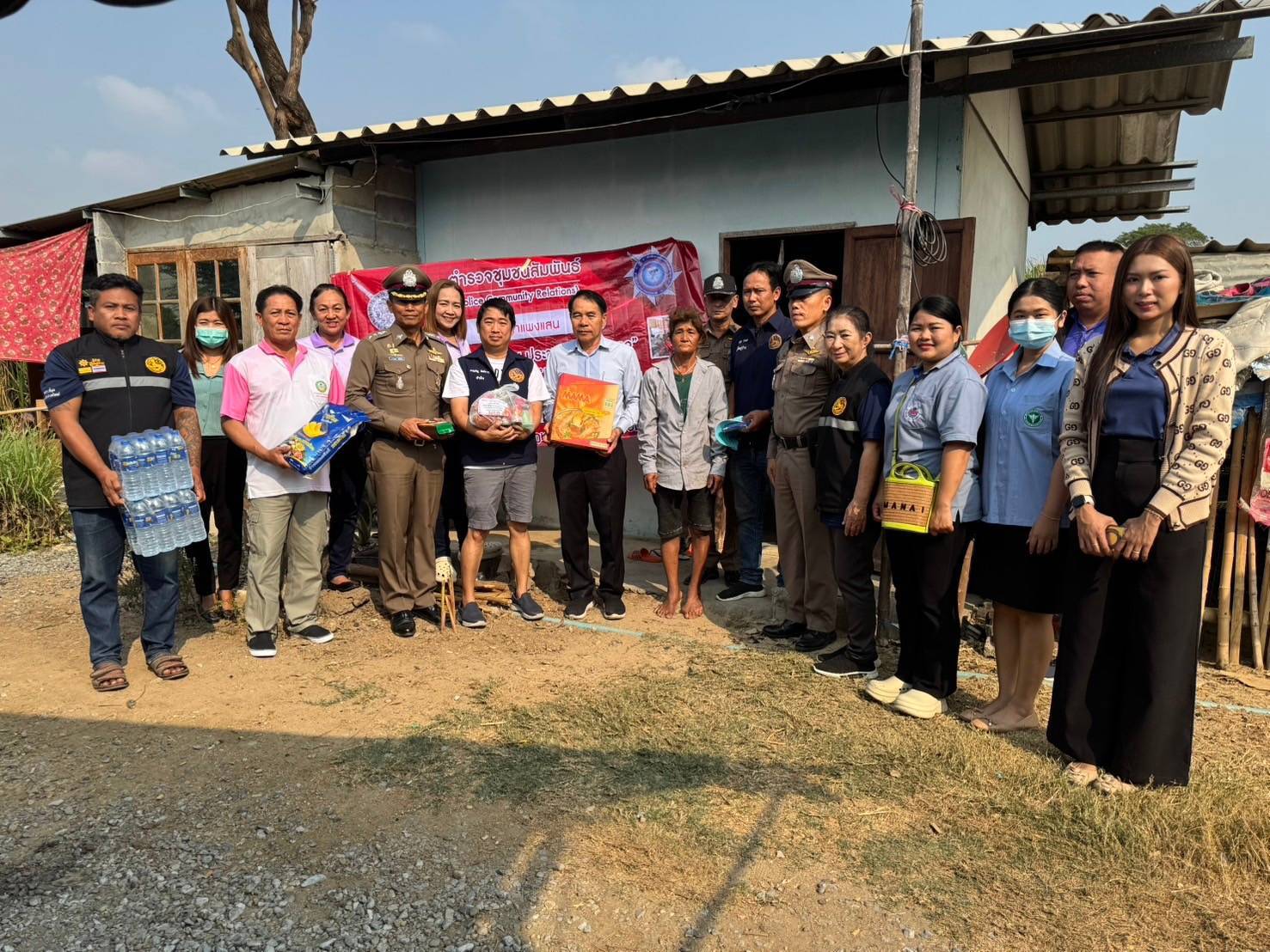 เจ้าหน้าที่ตำรวจ สภ.กำแพงแสน ร่วมกันมอบสิ่งของยังชีพให้กับผู้ป่วยตืดเตียง ผู้พิการ ผู้ยากไร้ บ้านโคกม่วง ม.1 ต.สระสี่มุม