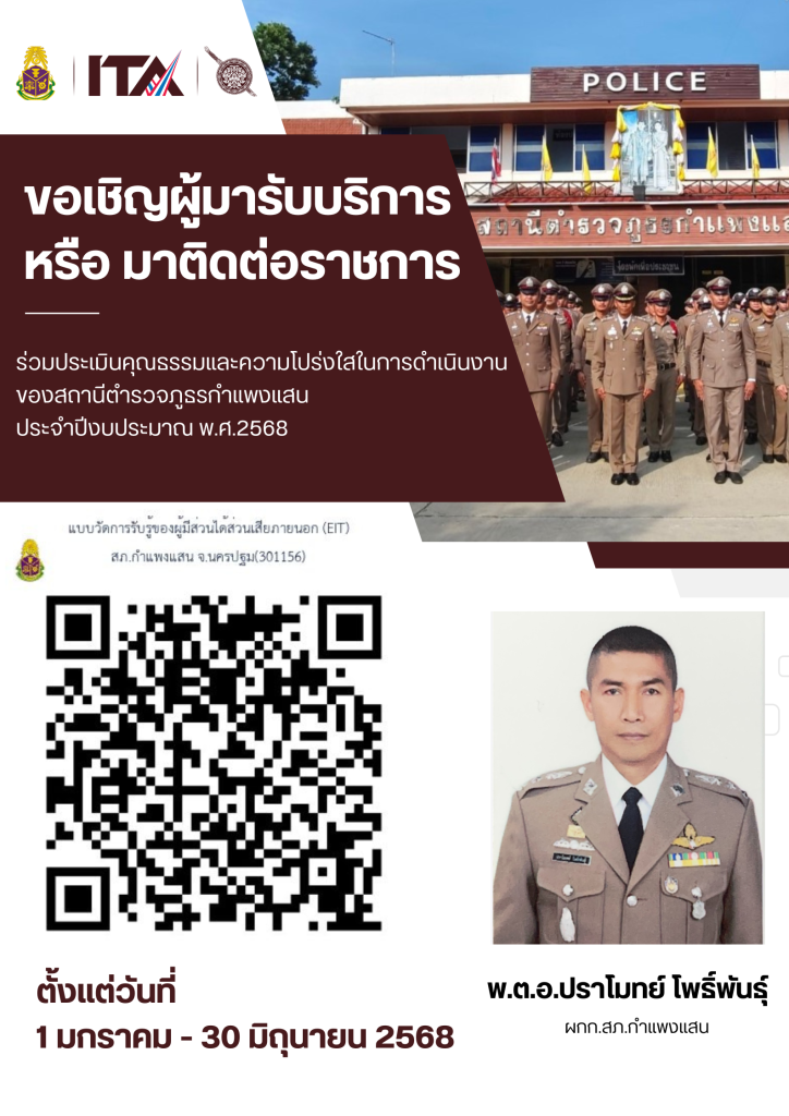 วันพฤหัสบดีที่ ๒๕ กรกฎาคม ๒๕๖๗ เวลา ๑๐.๐๐ น. พ.ต.อ.ปราโมทย์ โพธิ์พันธุ์ ผกก.สภ.กำแพงแสน ป