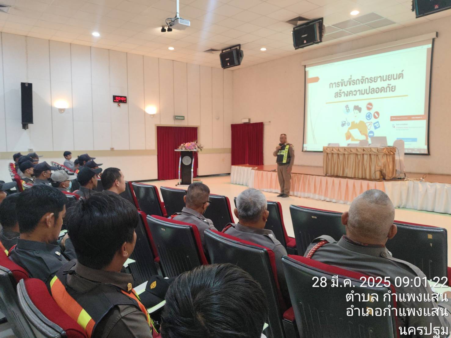 สายตรวจจราจร ให้ความรู้บรรยายเกี่ยวกับการขับขี่รถจักรยานยนต์สร้างความปลอดภัย ให้เจ้าหน้าที่รักษาความปลอดภัยใน ม.เกษตรศาสตร์