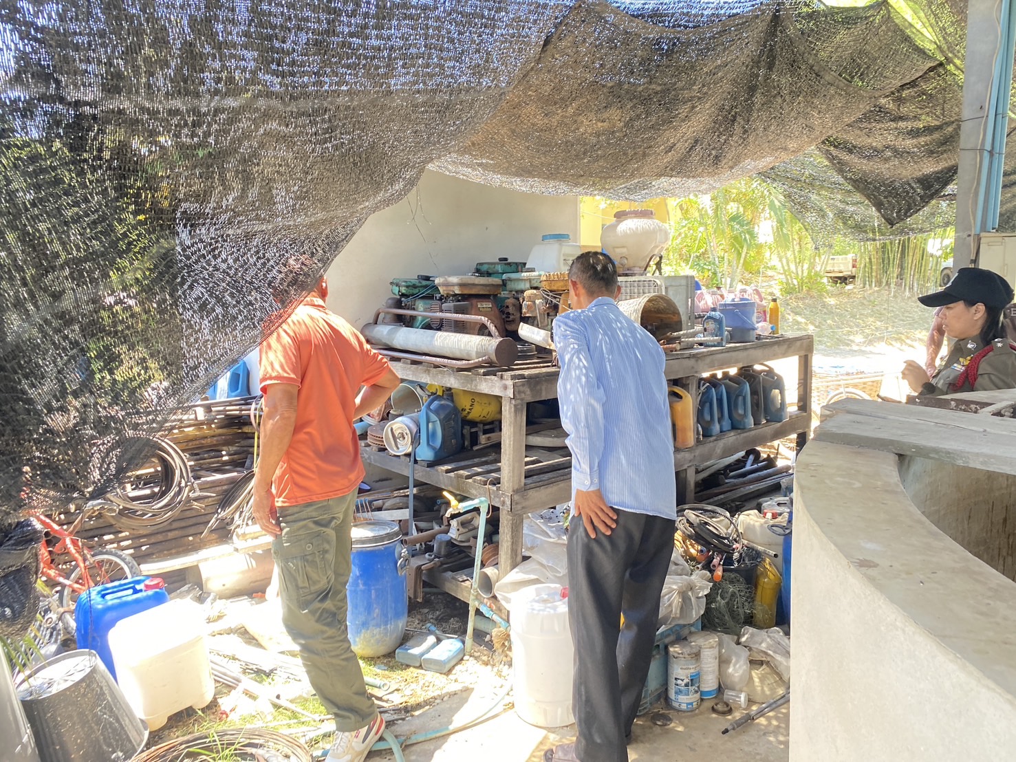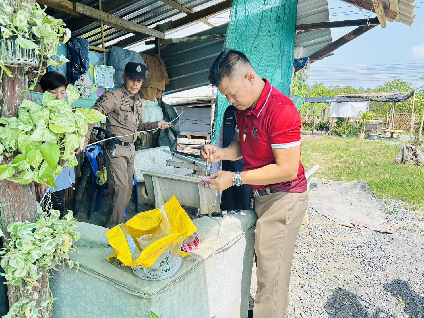 ร้อยเวรพร้อมเจ้าหน้าที่ฝ่ายสืบสวนตรวจที่เกิดเหตุ เหตุลักเครื่องปั้มน้ำ