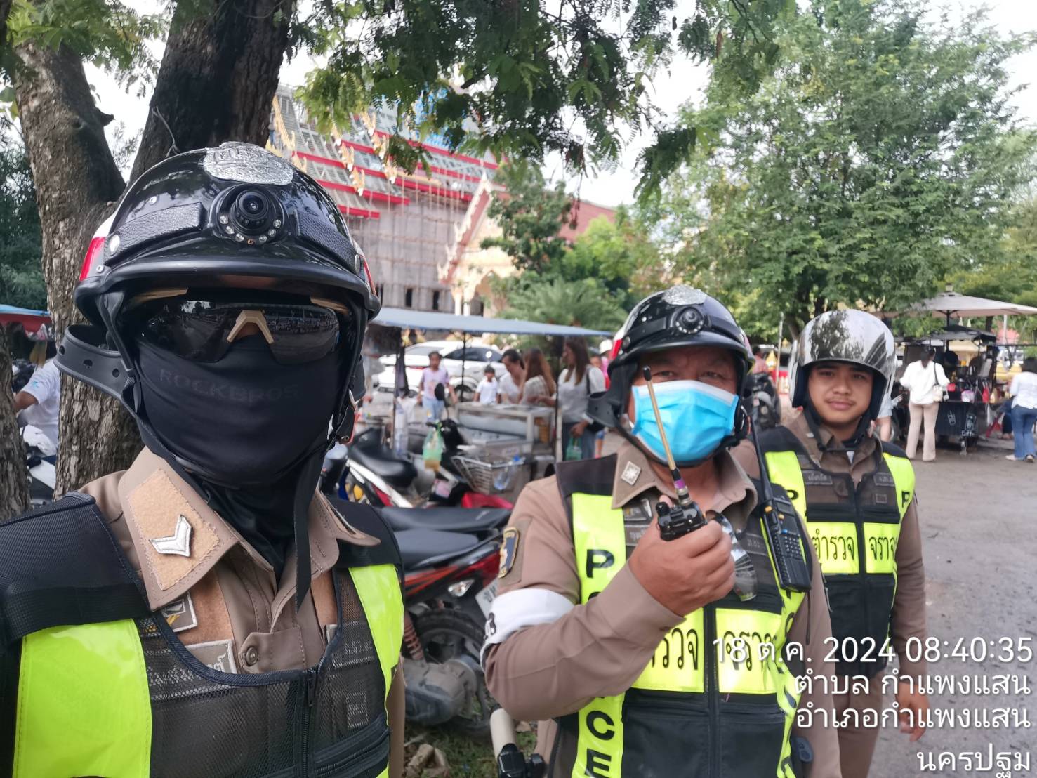สถานีตำรวจภูธรกำแพงแสน สายตรวจตำบลห้วยขวางพร้อมด้วย อส.ตร ออกตรวจป้องกันเหตุอาชญากรรมในงานทอดกฐิน วั