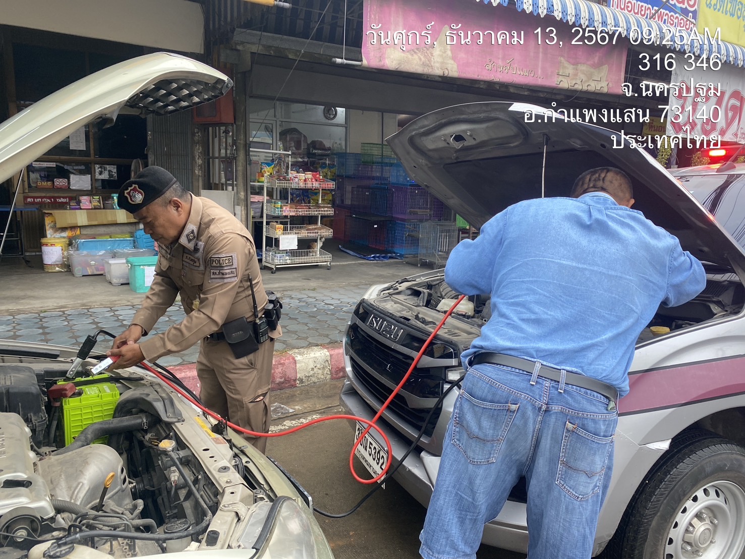 เจ้าหน้าที่ตำรวจ สภ.กำแพงแสน ช่วยเหลือประชาชนรถยนต์แบตหมด