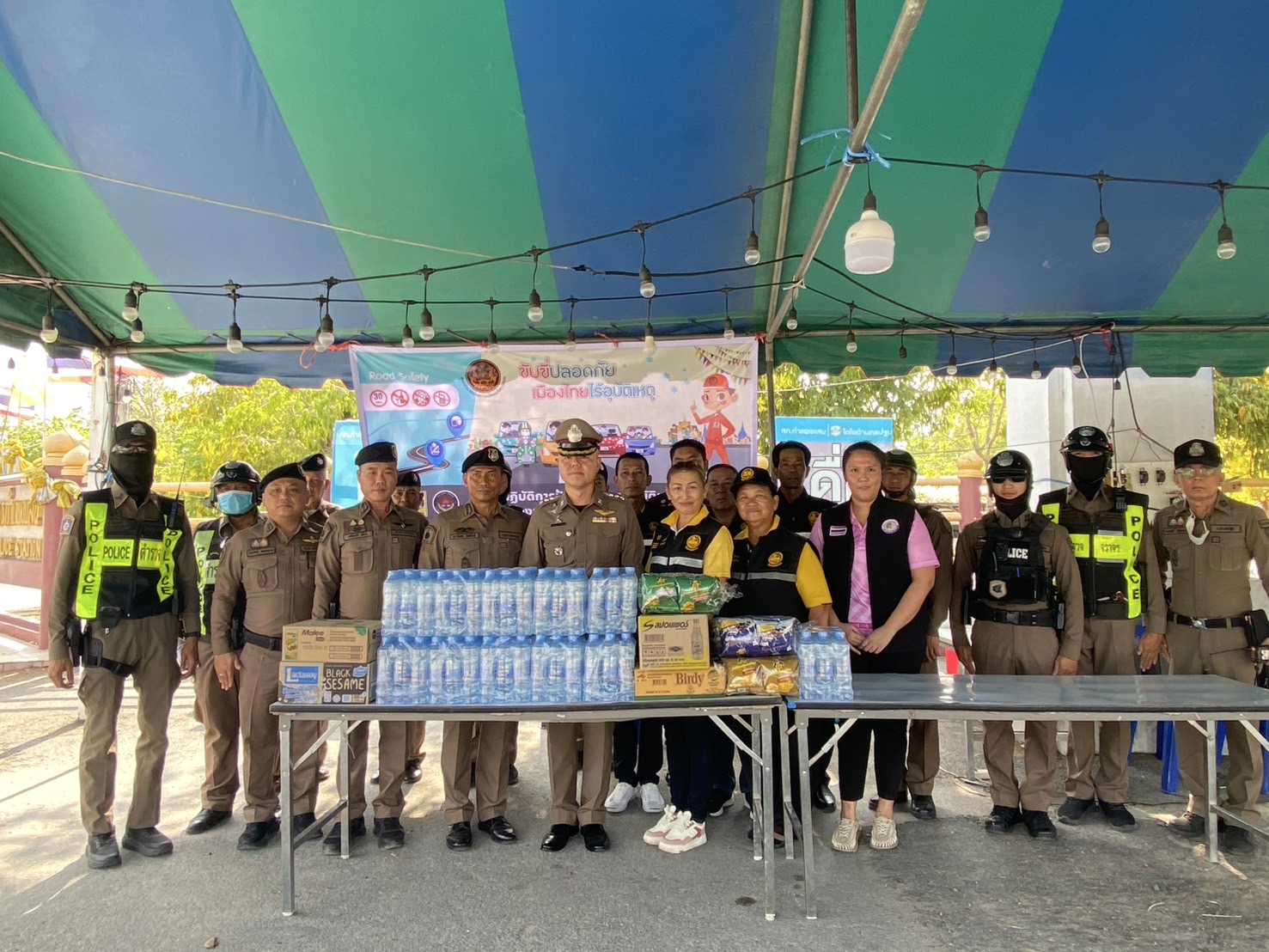 พ.ต.อ.ปราโมทย์ โพธิ์พันธุ์ ผกก.สภ.กำแพงแสน รับมอบผลิตภัณฑ์ของ บริษัท แลคตาซอย จำกัด เพื่ออำนวยความสะ
