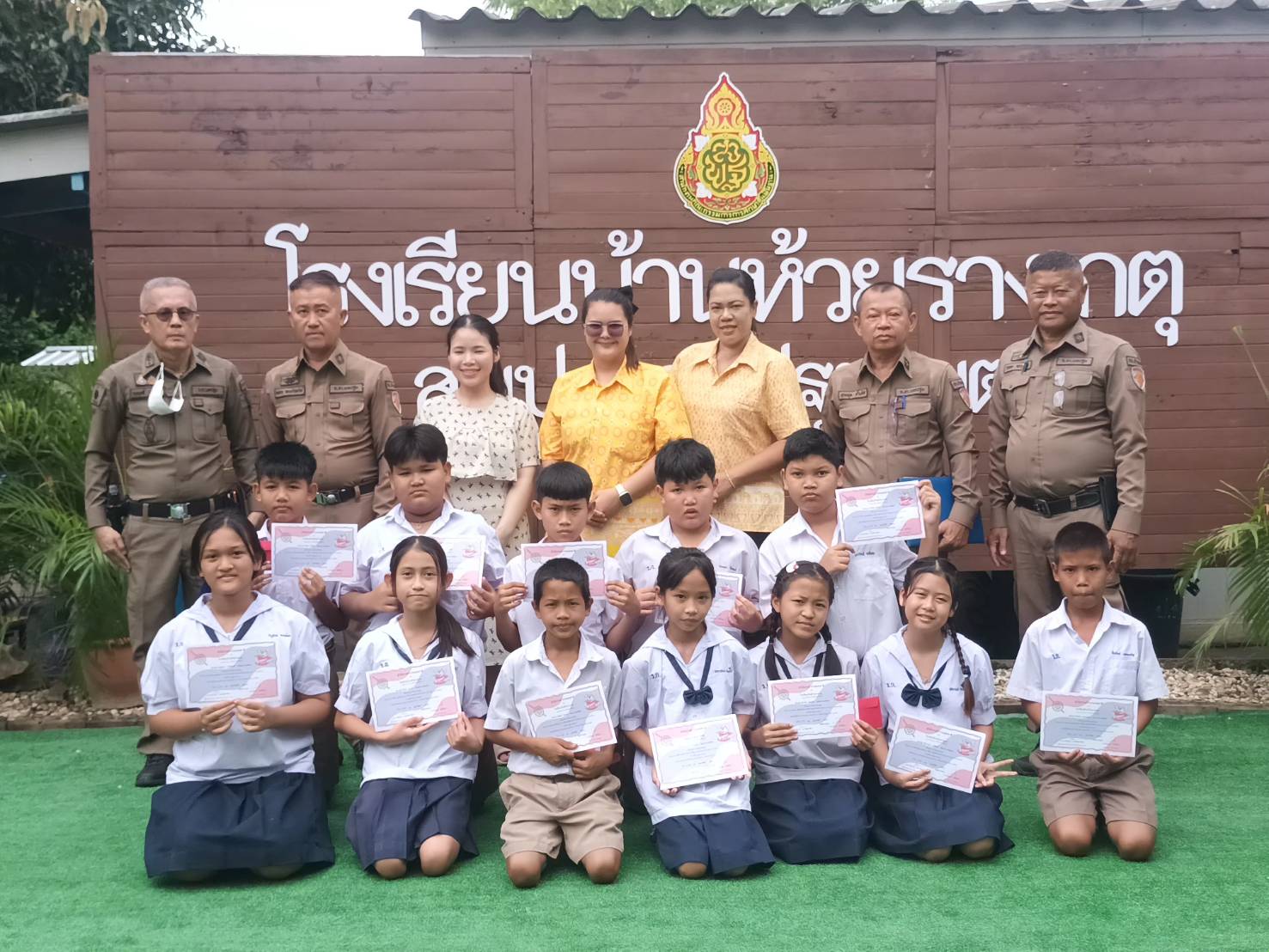พิธีมอบประกาศนียบัตรโครงการต่อต้านการใช้ยาเสพติดในเด็กนักเรียน ที่โรงเรียนบ้านห้วยรางเกตุ