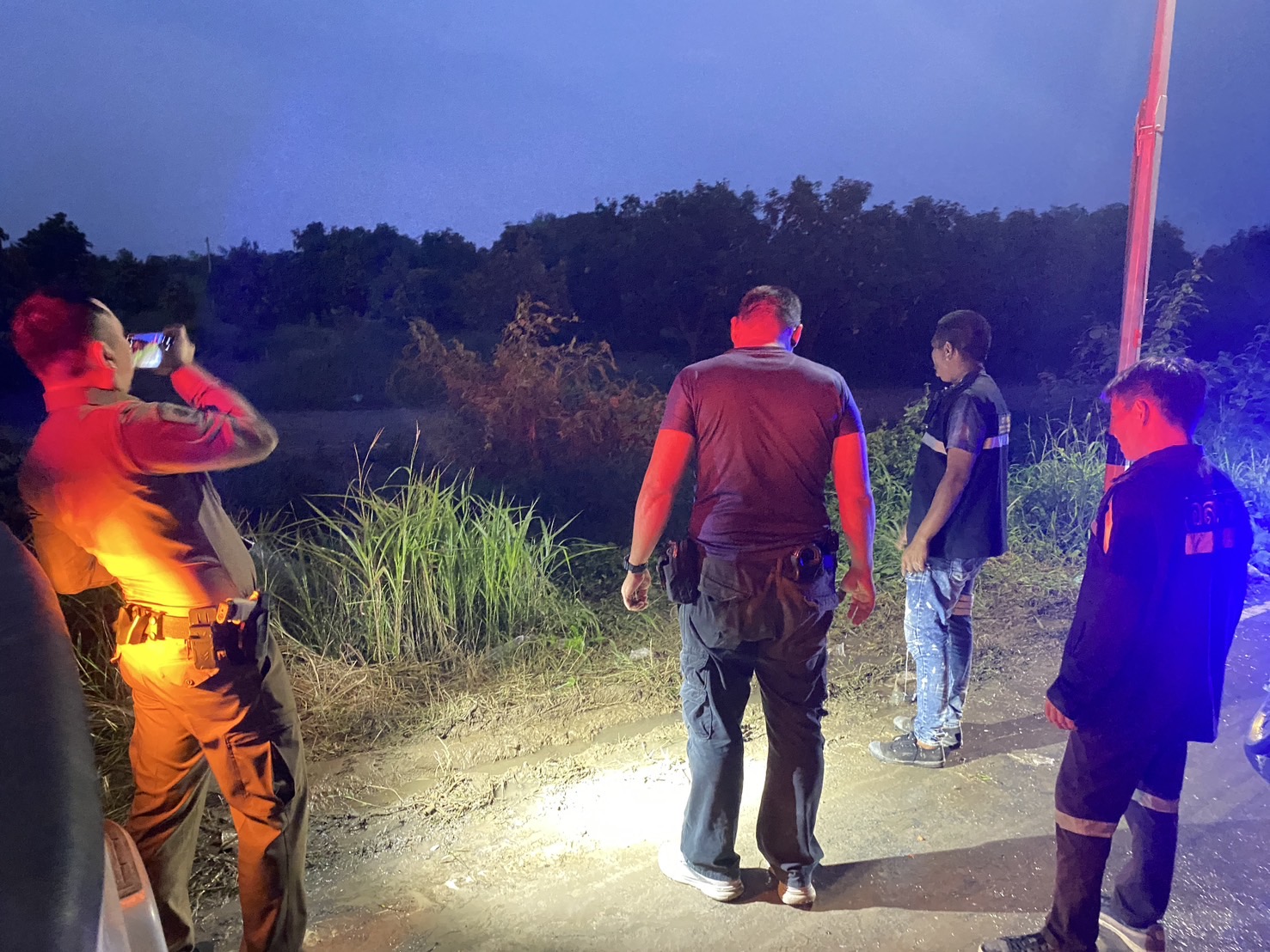 ร.ต.อ.ไชยณรงค์ บุญเอก รอง.สว(สอบสวน)สภ.กำแพงแสน พร้อมกำลังฝ่ายสืบสวนเดินทางตรวจสถานที่เกิดเหตุ เหตุล